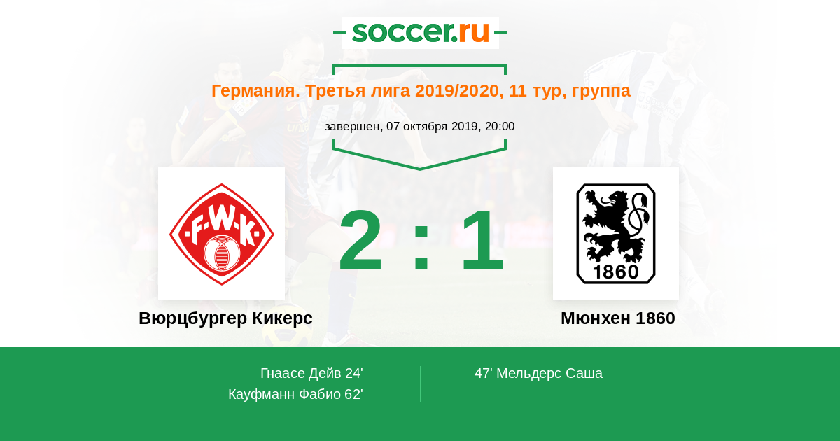 Протокол матча Вюрцбургер Кикерс против Мюнхен 1860