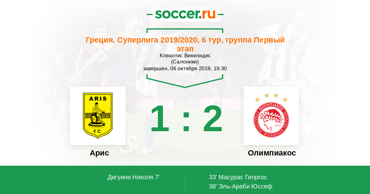 Протокол матча Арис против Олимпиакос