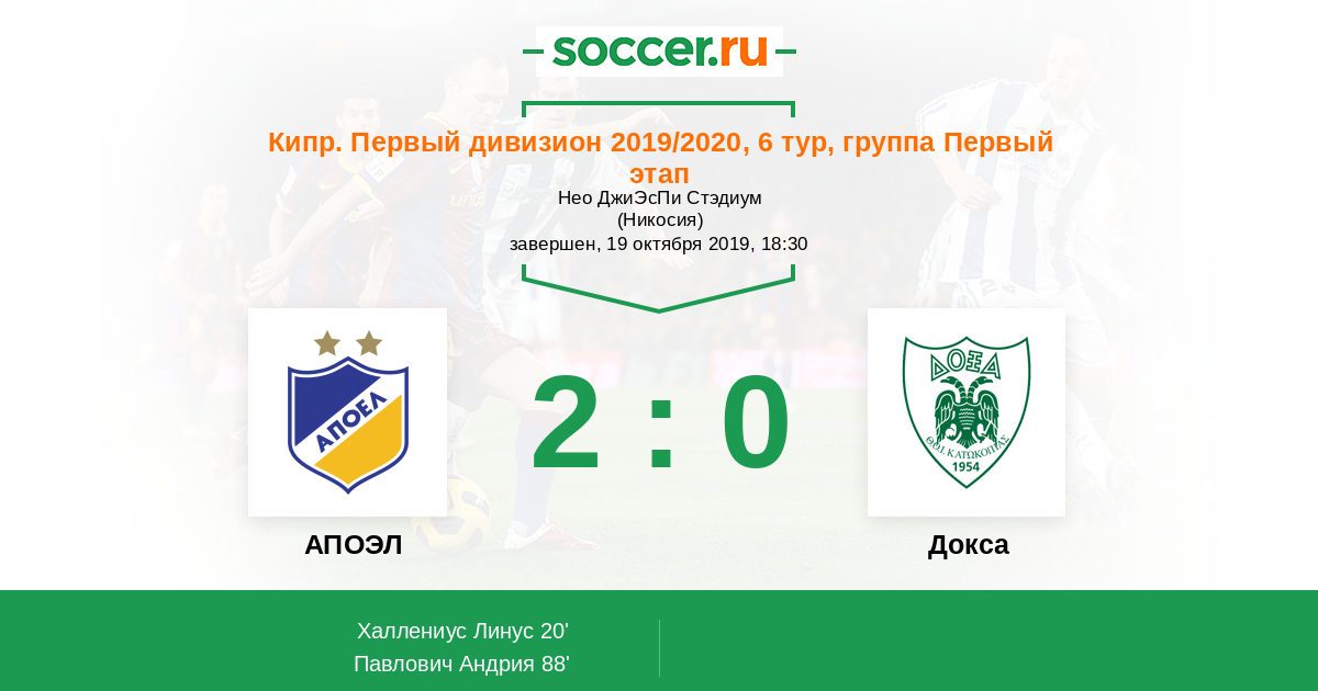 Протокол матча АПОЭЛ против Докса