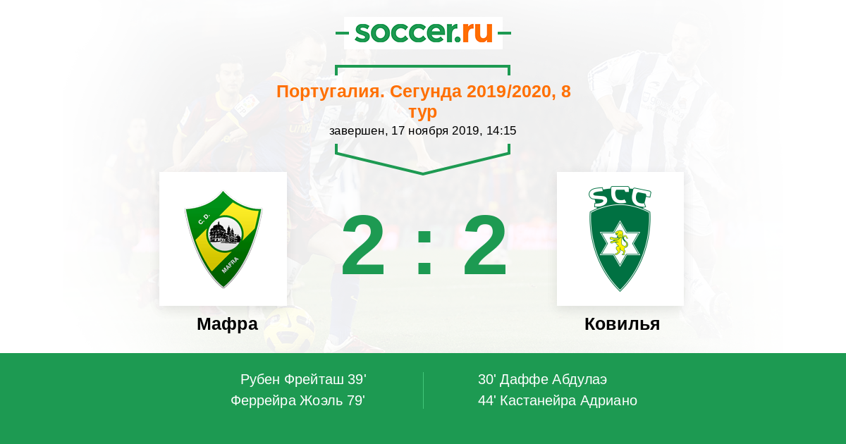 Протокол матча Мафра против Ковилья