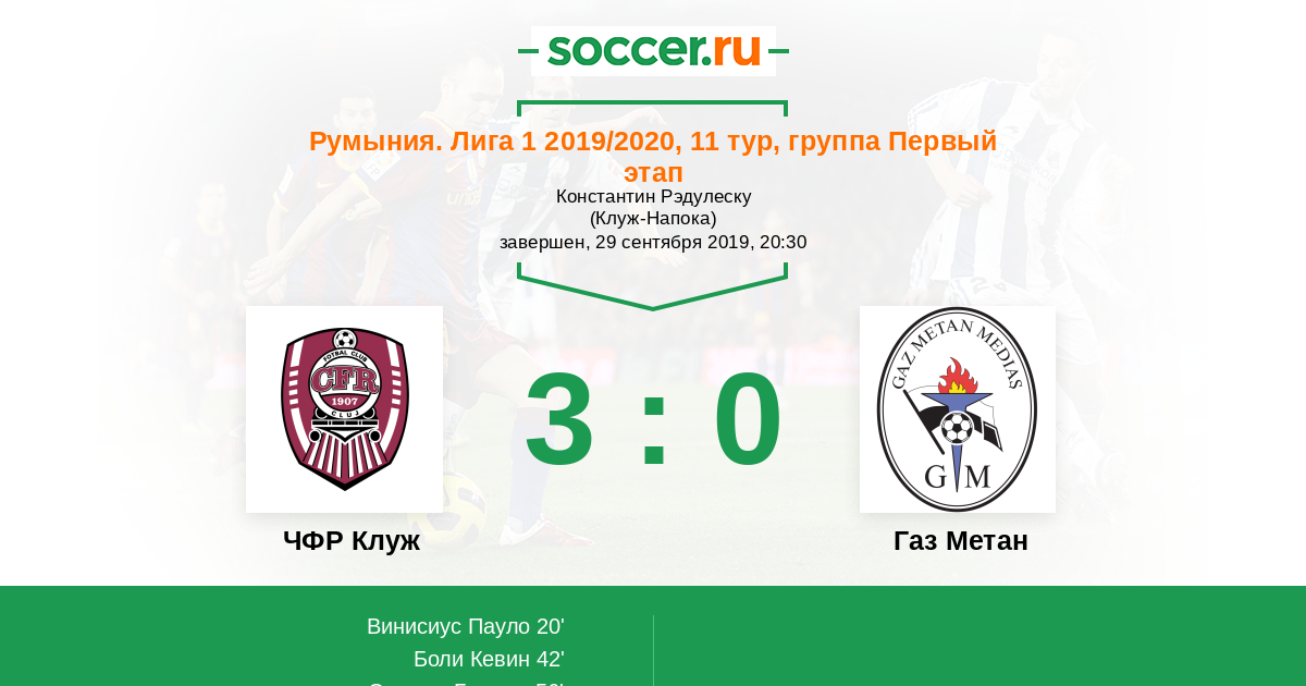 Протокол матча ЧФР Клуж против Газ Метан