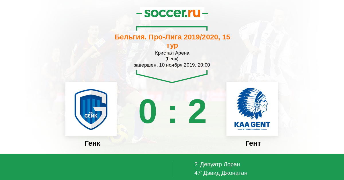 Протокол матча Генк против Гент