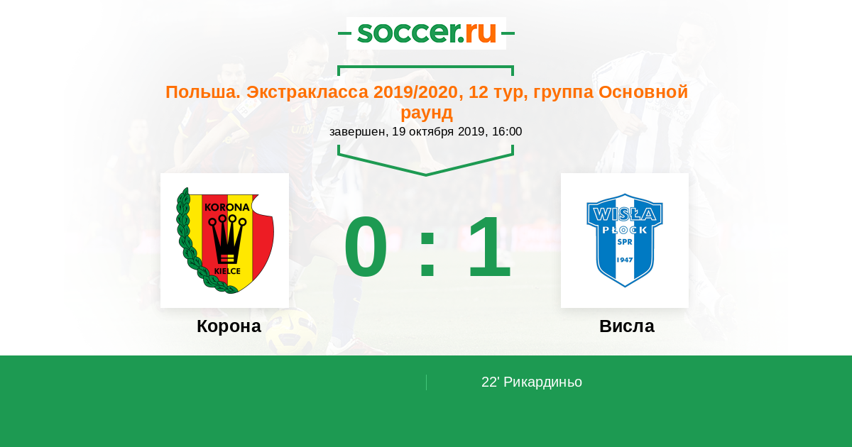 Протокол матча Корона против Висла