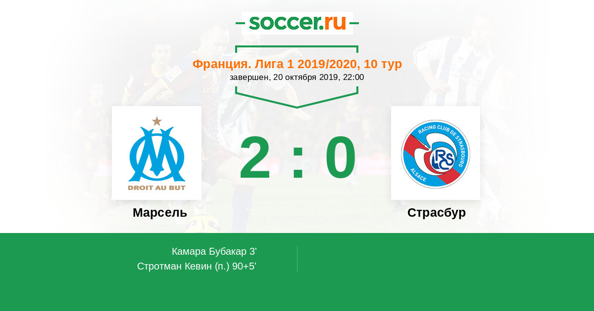 Протокол матча Марсель против Страсбур