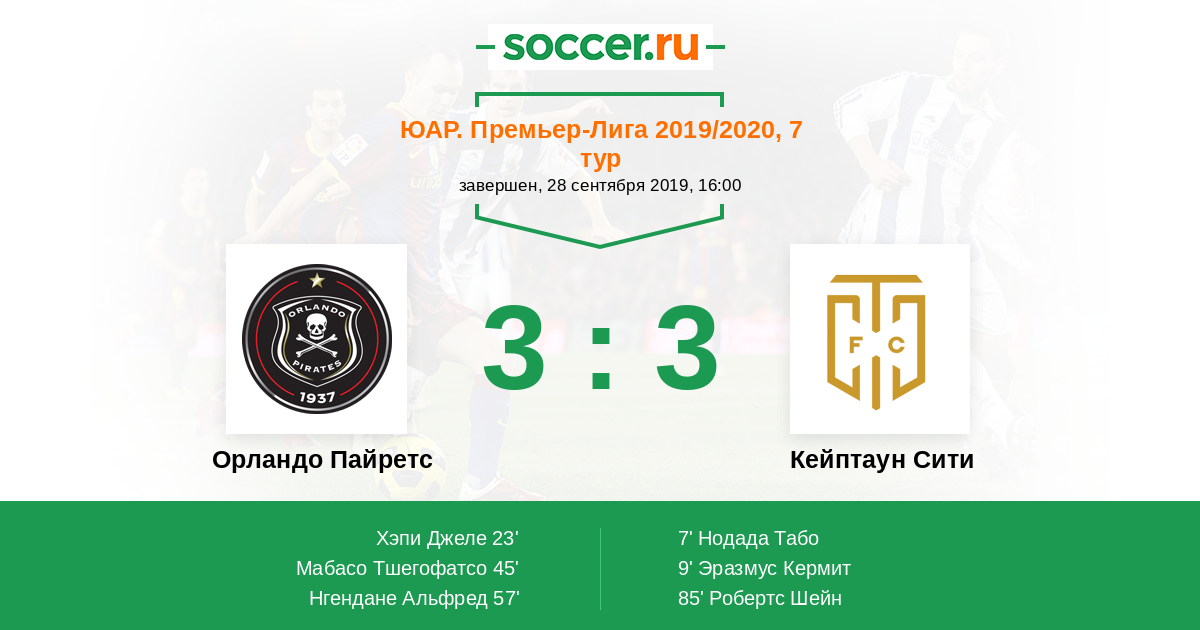 Протокол матча Орландо Пайретс против Кейптаун Сити