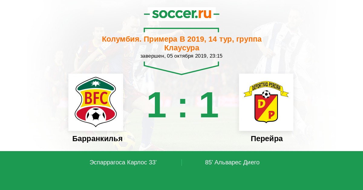 Протокол матча Барранкилья против Перейра