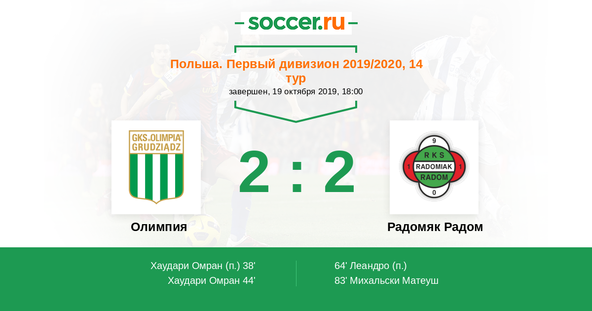 Протокол матча Олимпия против Радомяк Радом