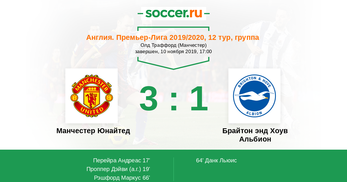 Протокол матча Манчестер Юнайтед против Брайтон энд Хоув Альбион