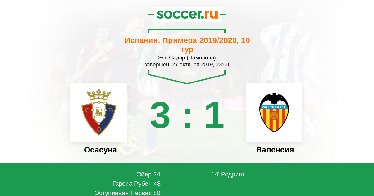 Протокол матча Осасуна против Валенсия