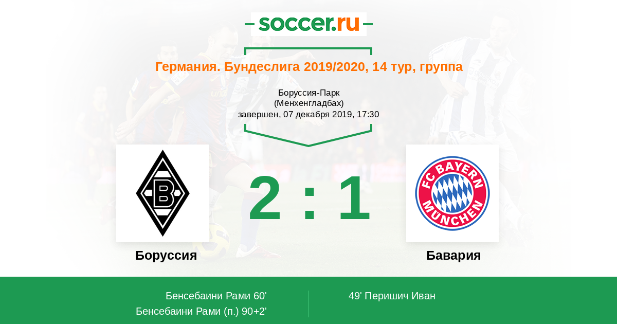 Протокол матча Боруссия против Бавария