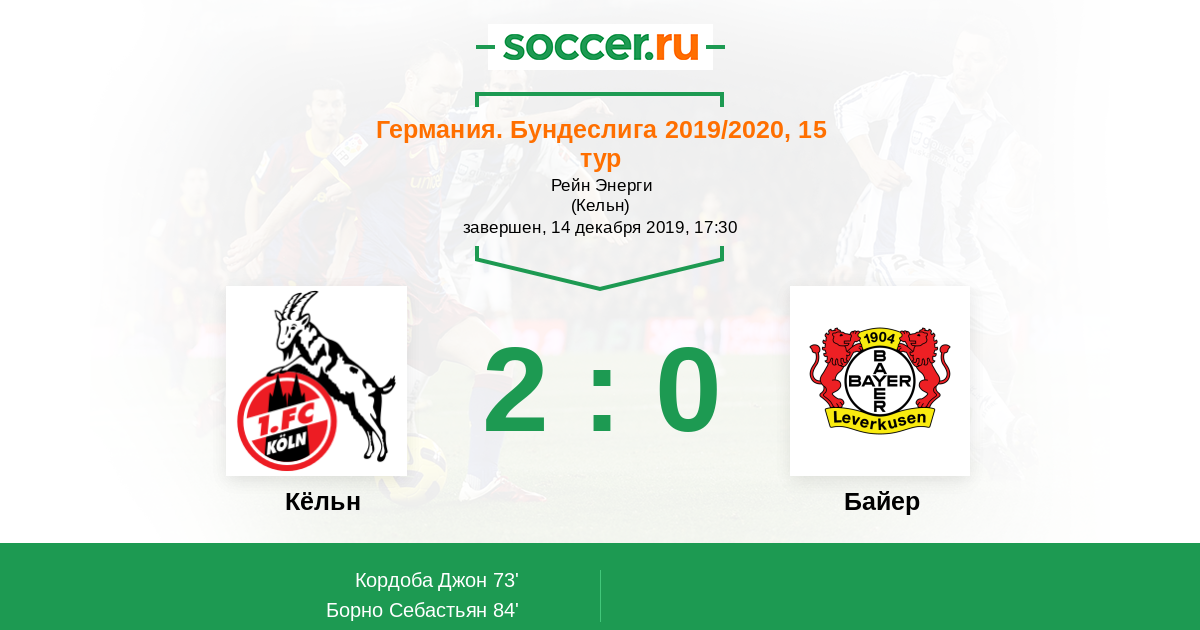 Протокол матча Кёльн против Байер