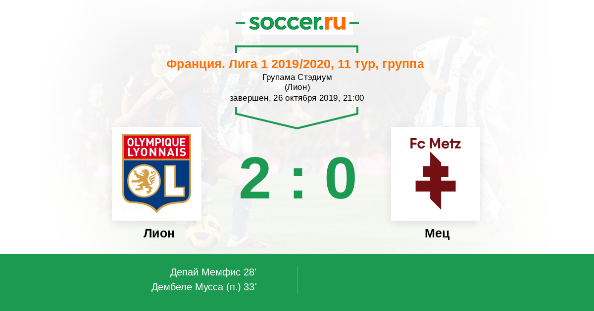 28' (1:0) Депай Мемфис (11) (Денайе Джейсон (5))