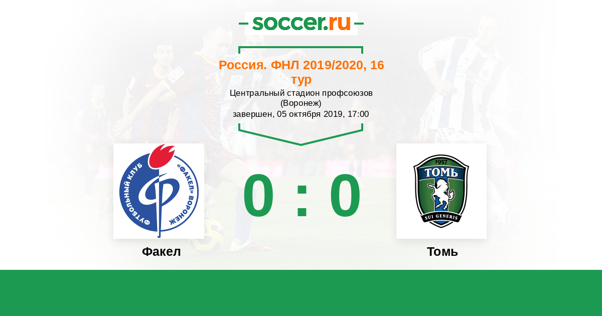 Протокол матча Факел против Томь