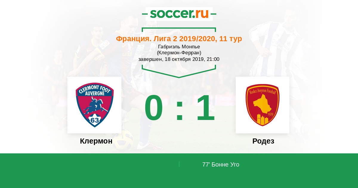 Протокол матча Клермон против Родез