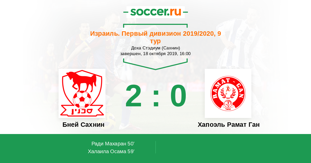 Протокол матча Бней Сахнин против Хапоэль Рамат Ган