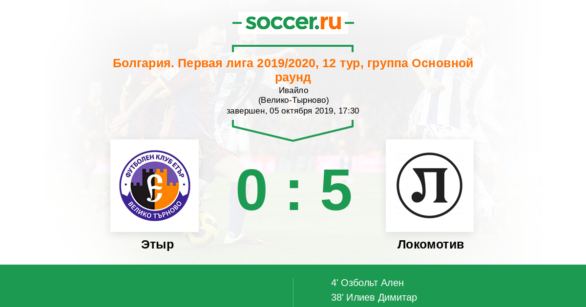 38' (0:2) Илиев Димитар (14) (Озбольт Ален (12))