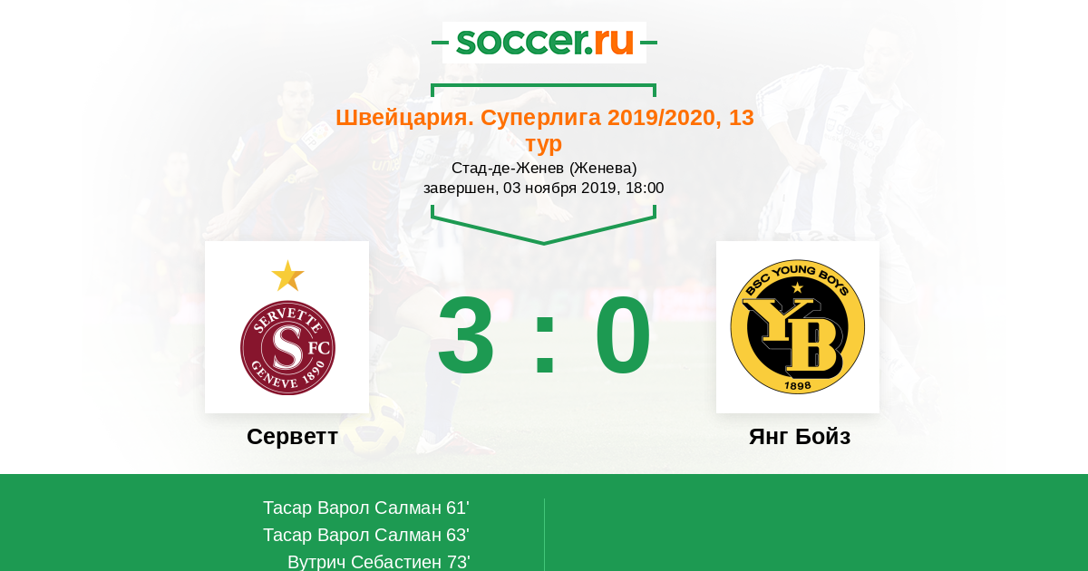 Протокол матча Серветт против Янг Бойз