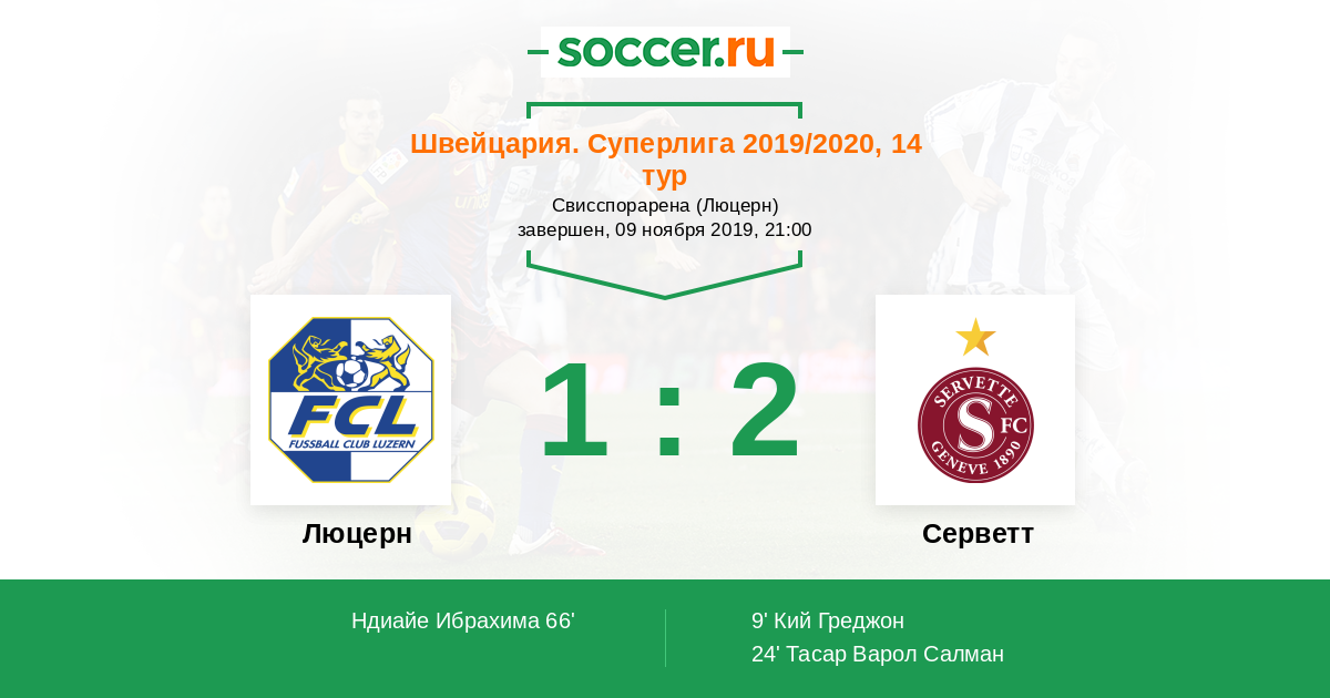Протокол матча Люцерн против Серветт