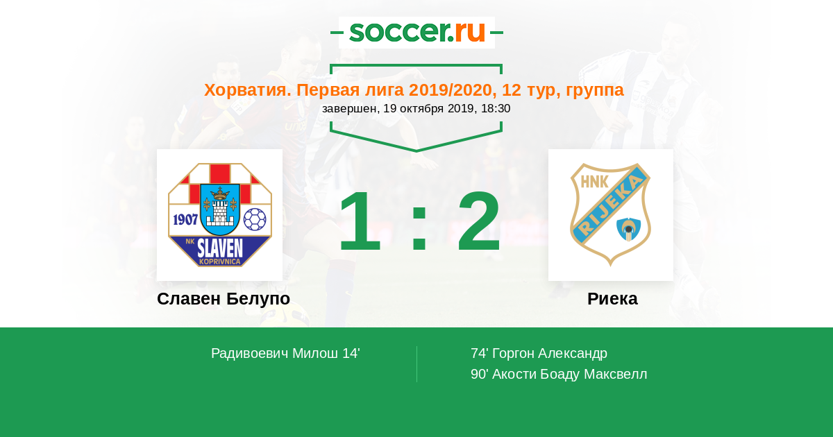 Протокол матча Славен Белупо против Риека