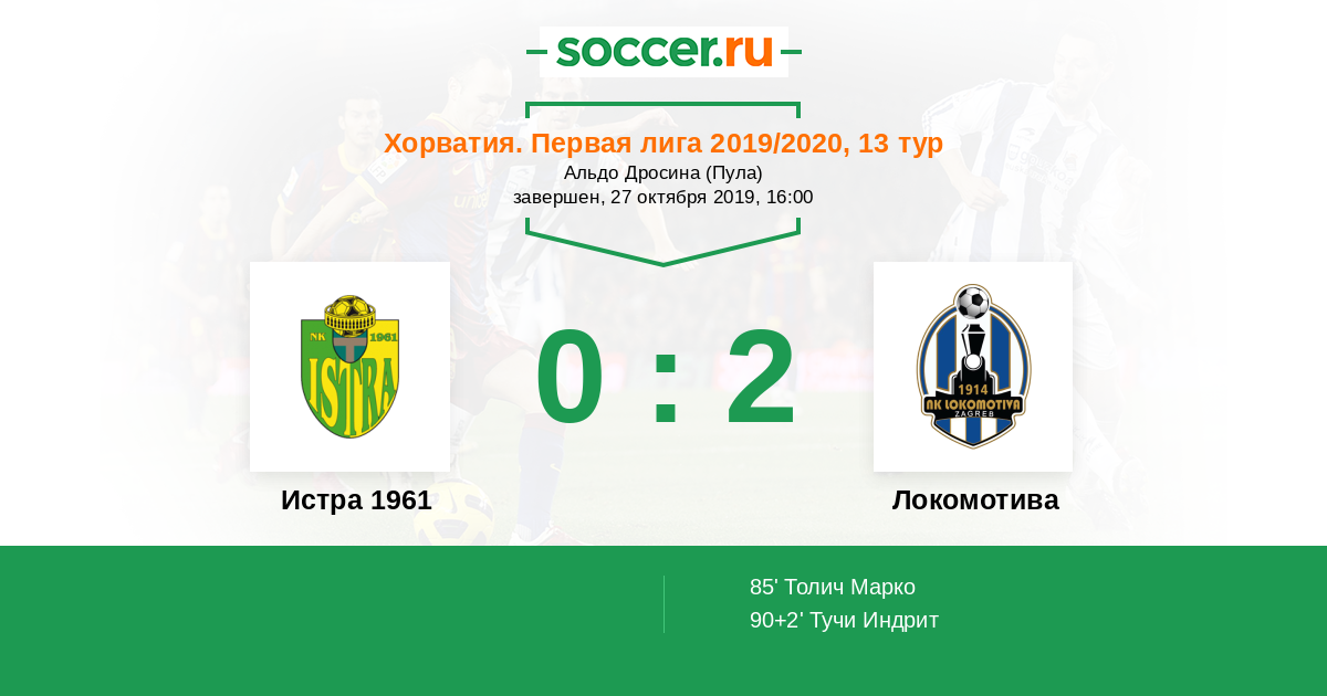 Протокол матча Истра 1961 против Локомотива
