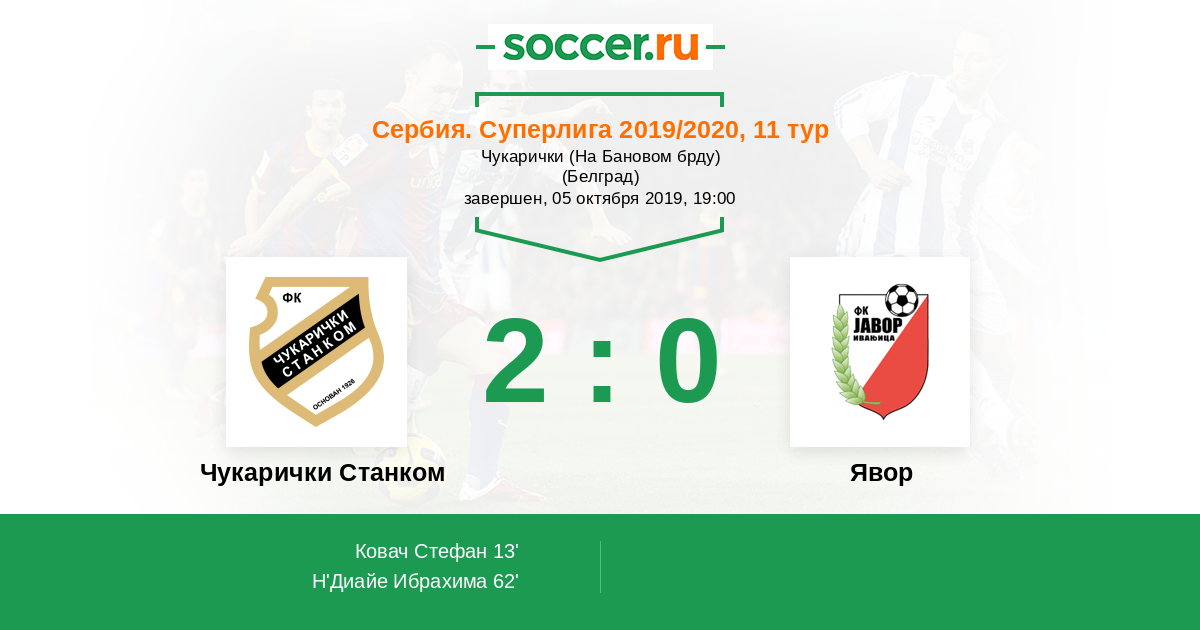 Протокол матча Чукарички Станком против Явор