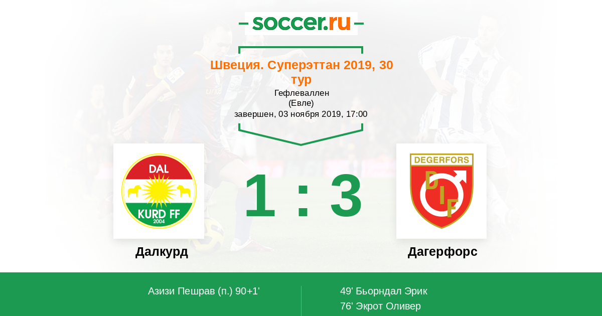 Протокол матча Далкурд против Дагерфорс