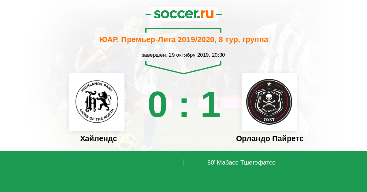 Протокол матча Хайлендс против Орландо Пайретс
