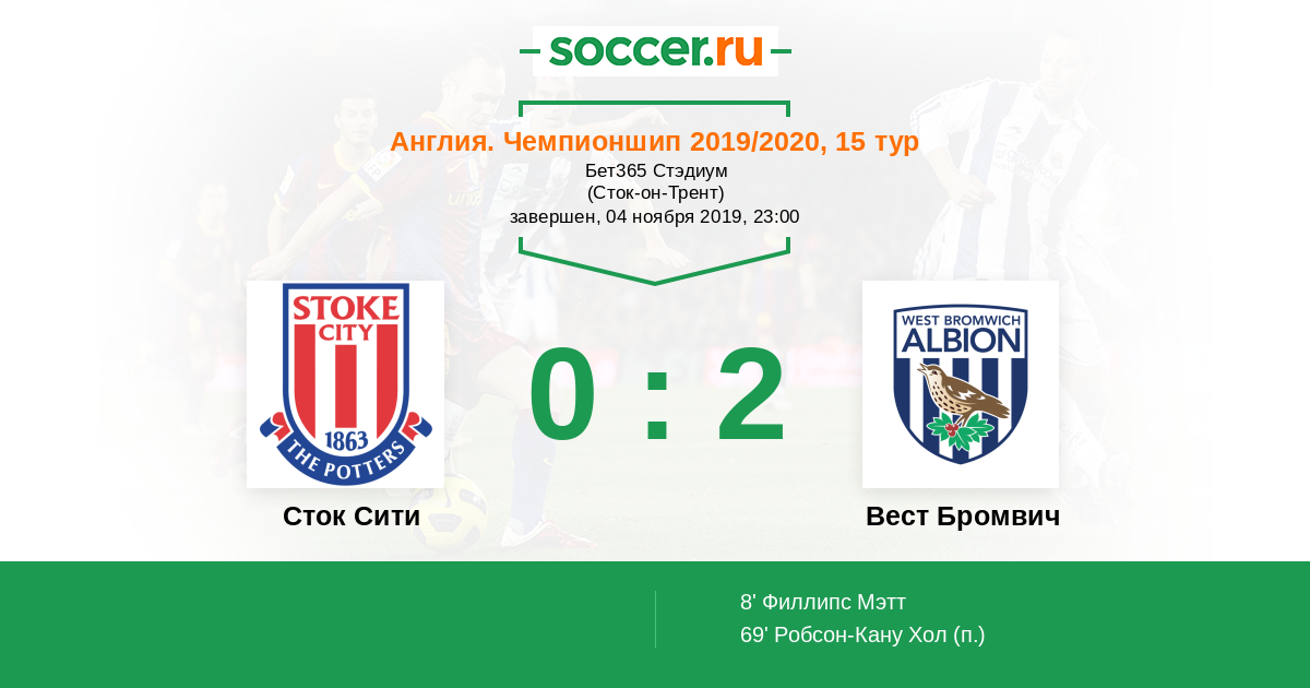 Протокол матча Сток Сити против Вест Бромвич