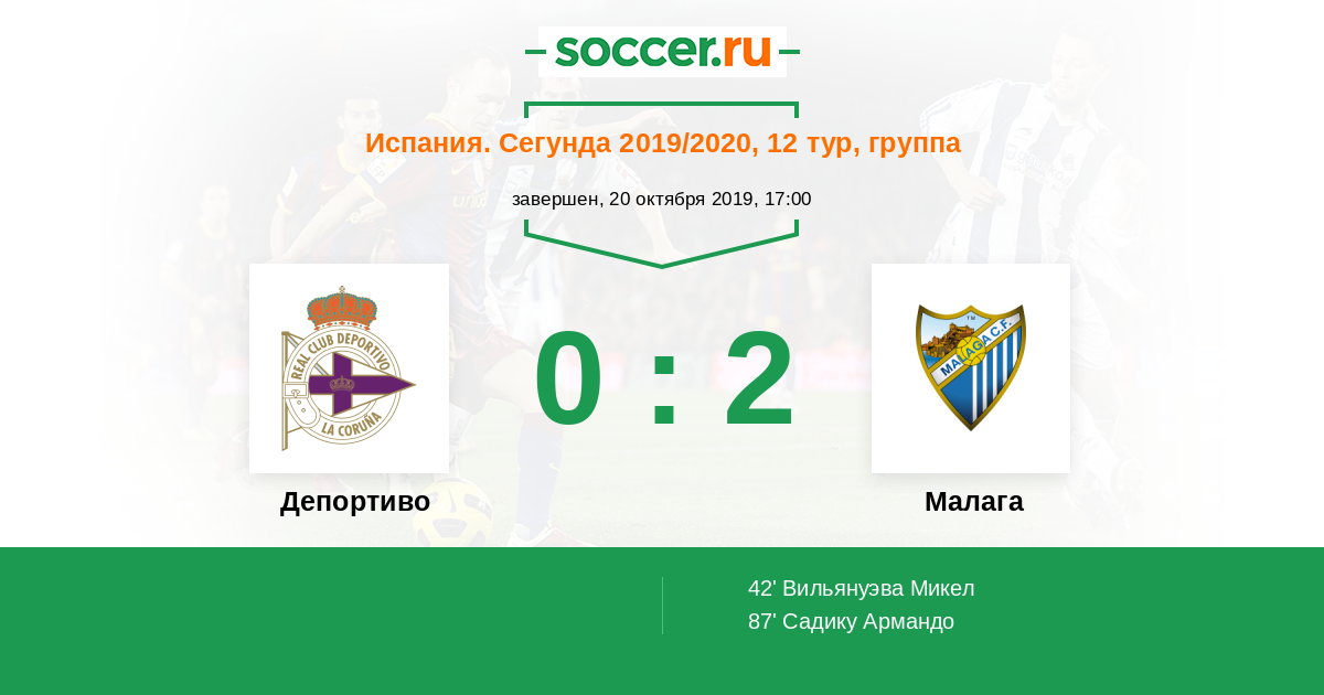 Протокол матча Депортиво против Малага