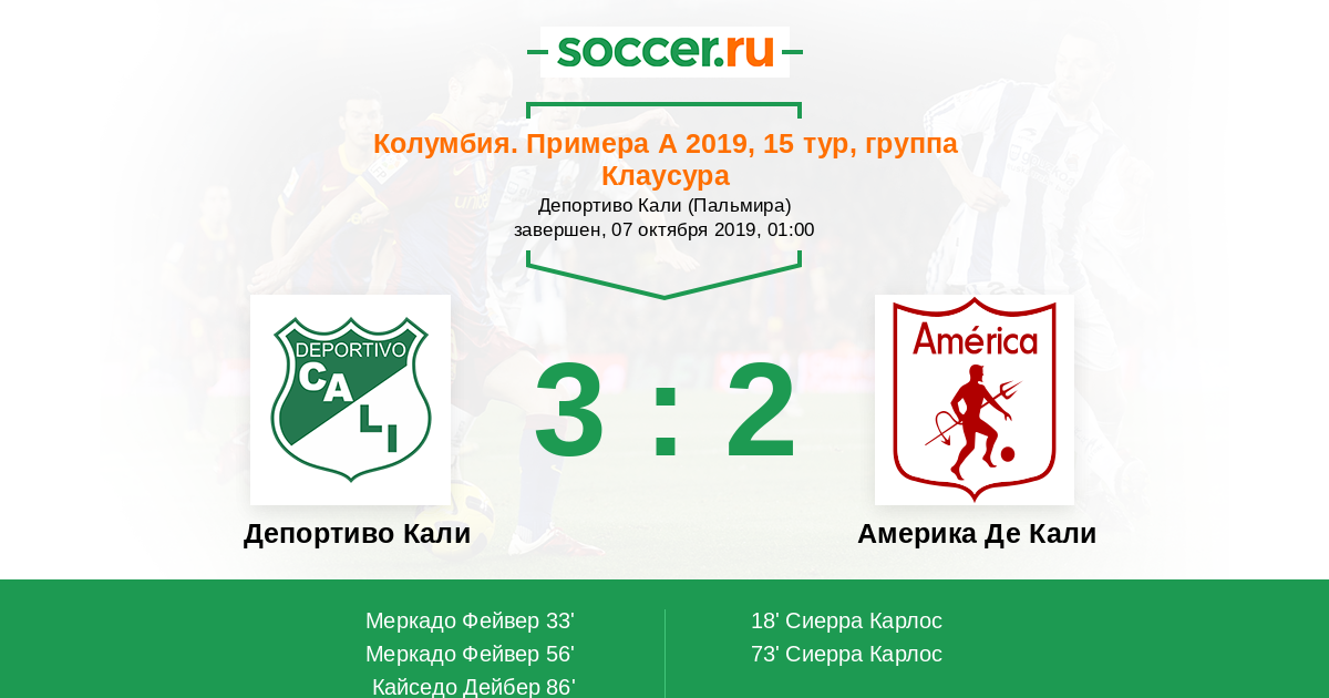 56' (2:1) Меркадо Фейвер (17) (Арройо Андрес (28))