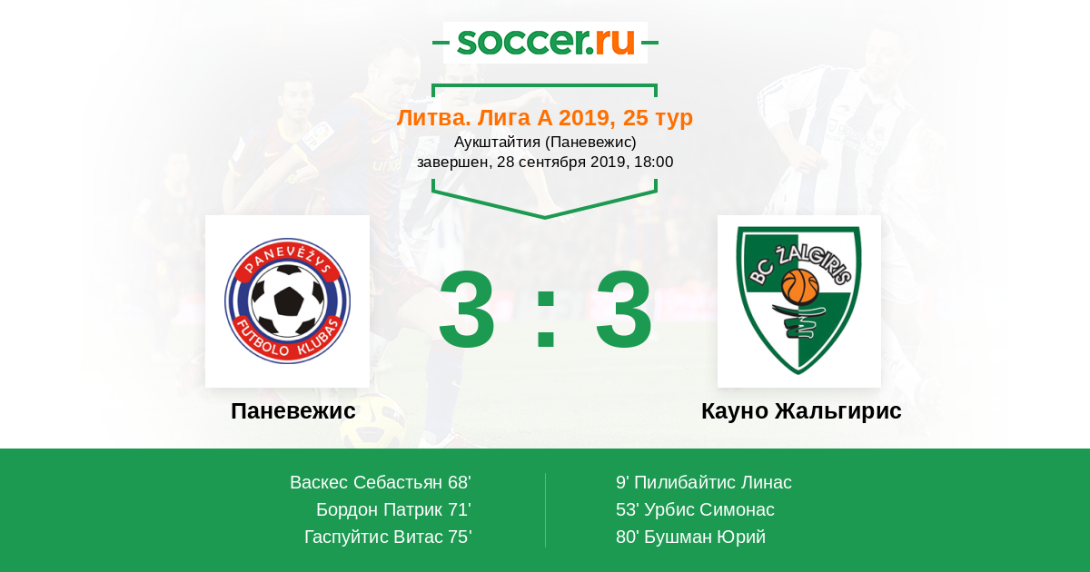 Протокол матча Паневежис против Кауно Жальгирис