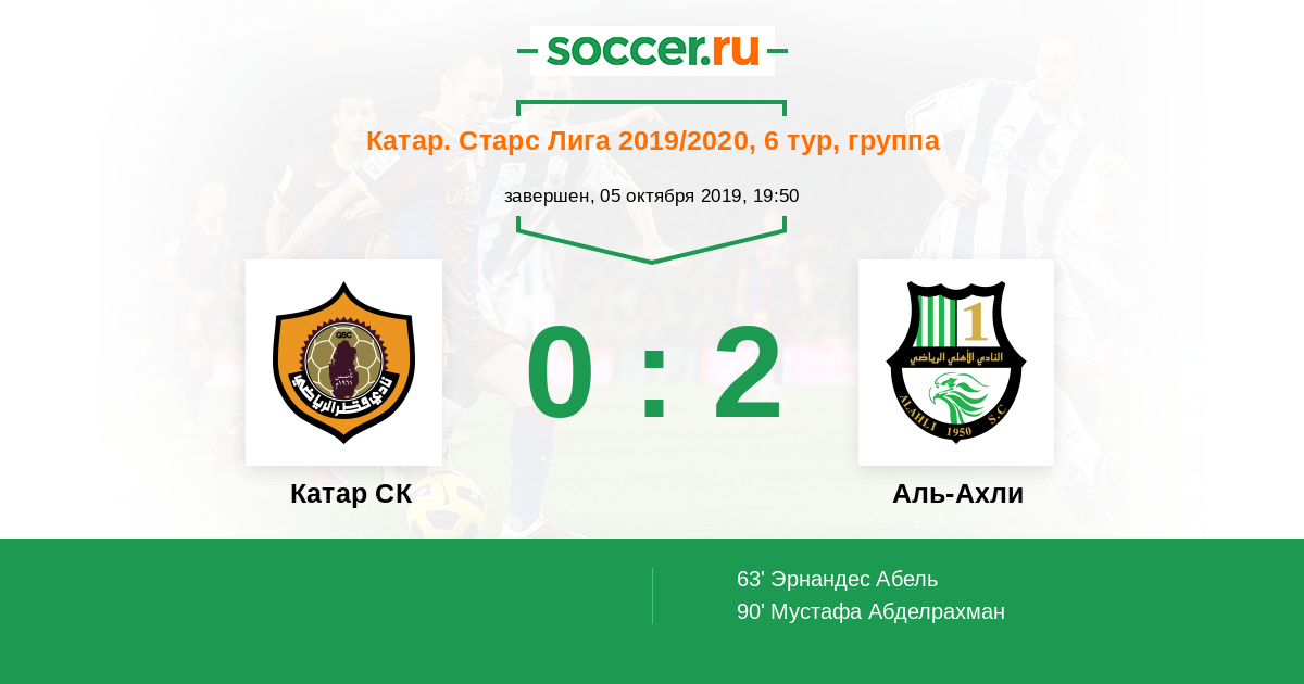 Протокол матча Катар СК против Аль-Ахли