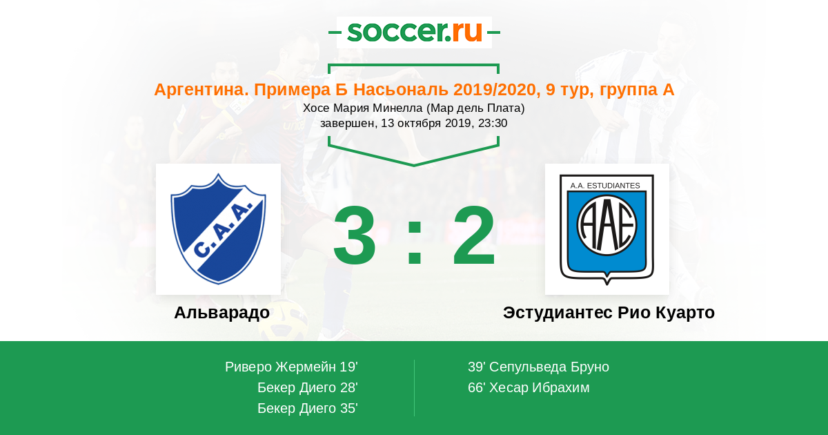 Протокол матча Альварадо против Эстудиантес Рио Куарто