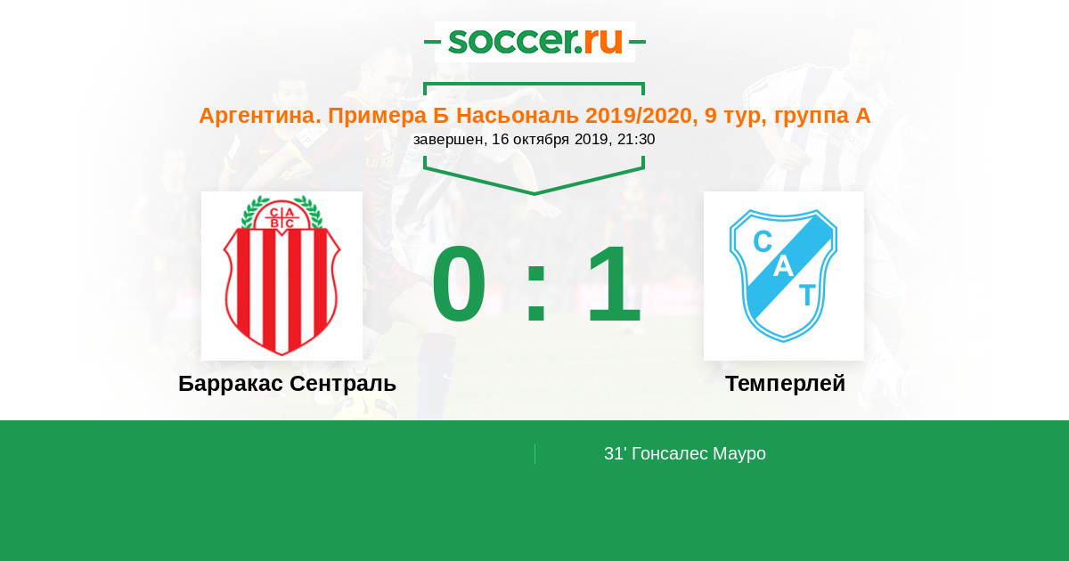 Протокол матча Барракас Сентраль против Темперлей