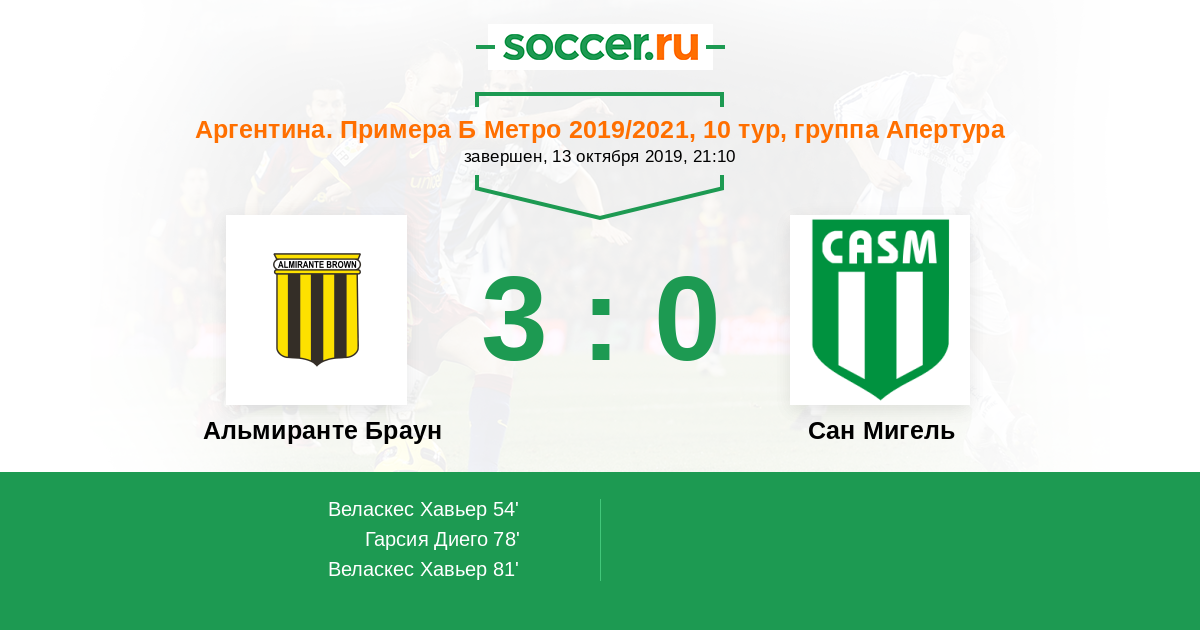 Протокол матча Альмиранте Браун против Сан Мигель