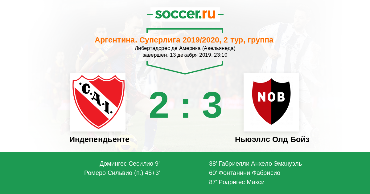 Протокол матча Индепендьенте против Ньюэллс Олд Бойз