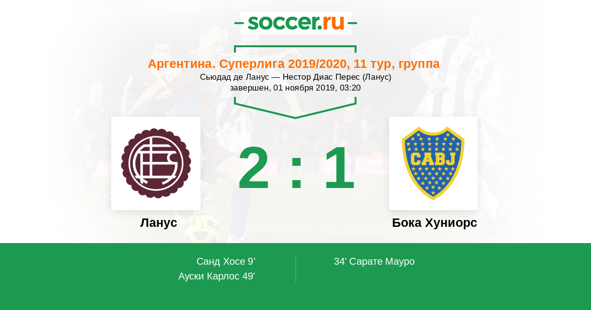 Протокол матча Ланус против Бока Хуниорс