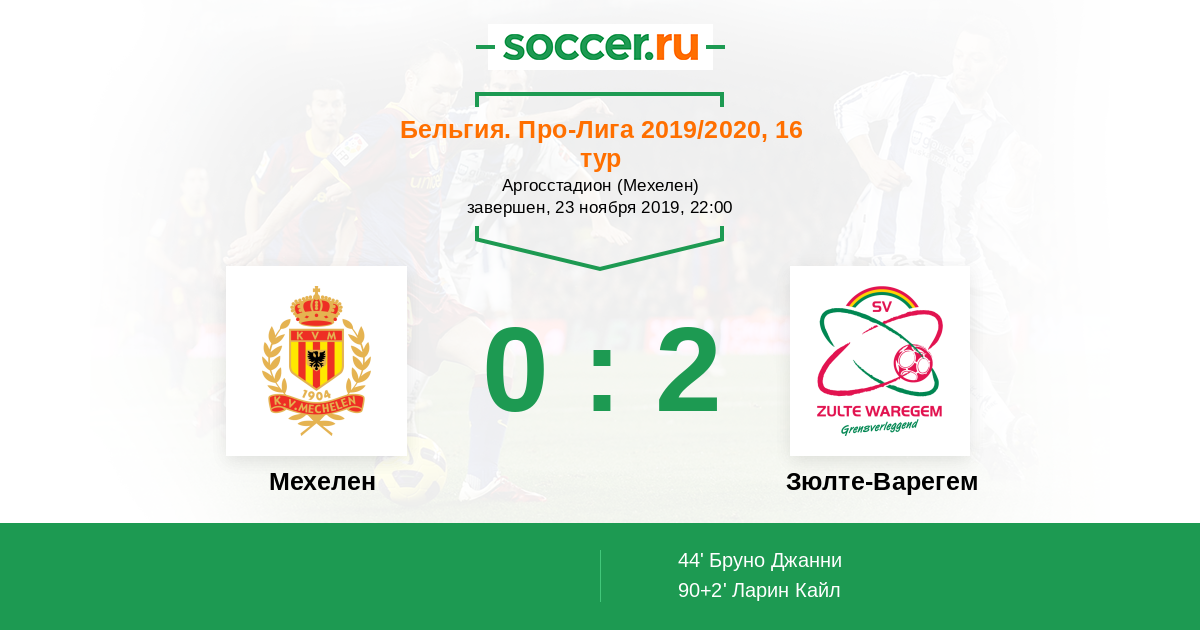44' (0:1) Бруно Джанни (19) (Менса Гидеон (4))