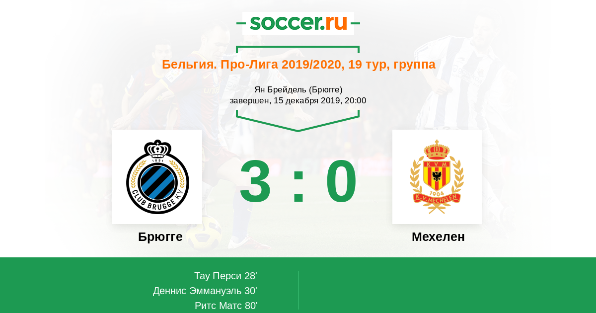 Протокол матча Брюгге против Мехелен