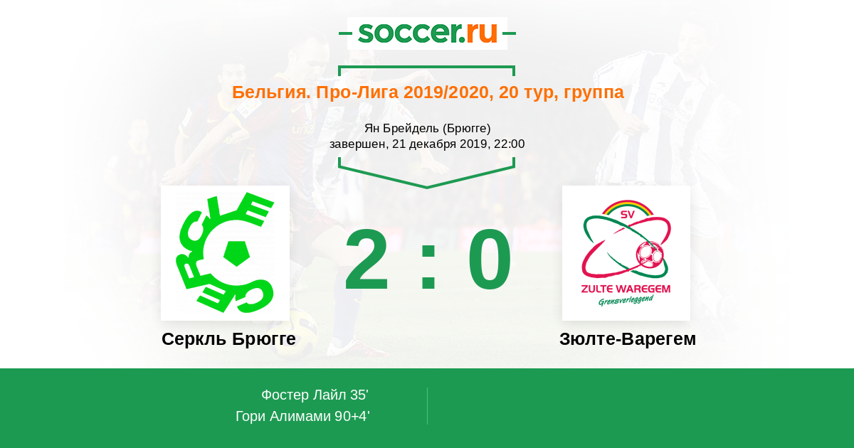 Протокол матча Серкль Брюгге против Зюлте-Варегем