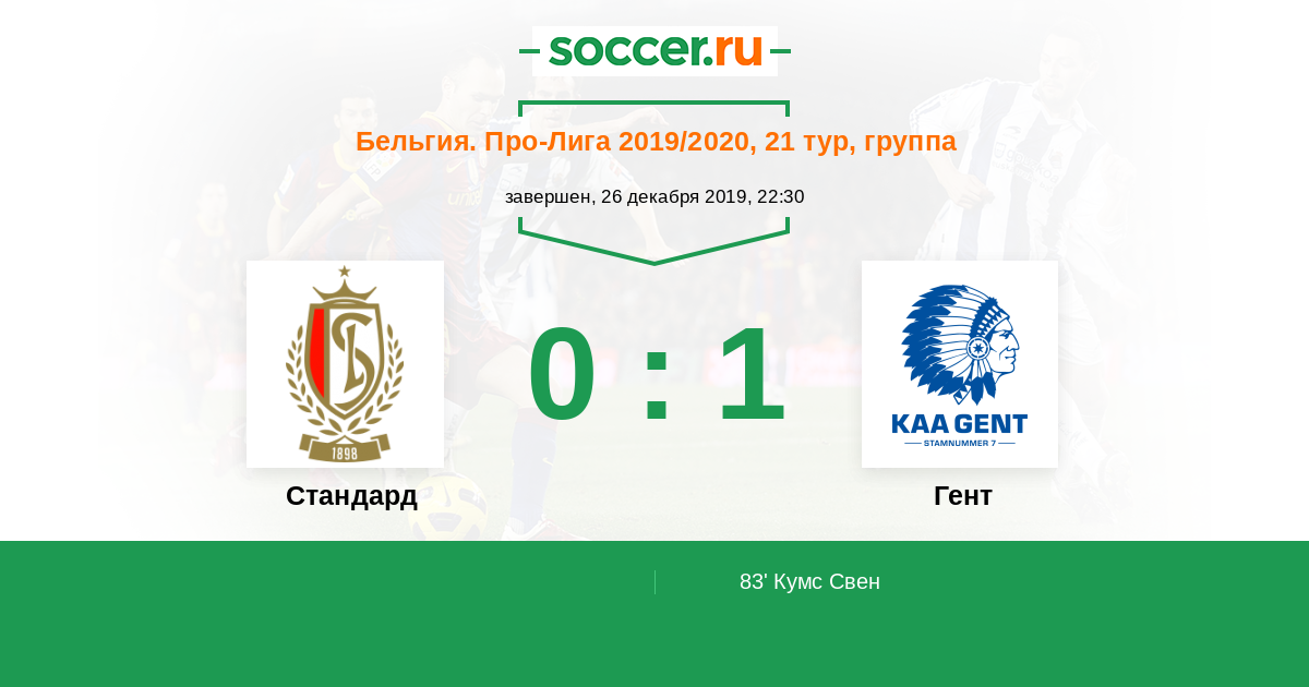 Протокол матча Стандард против Гент