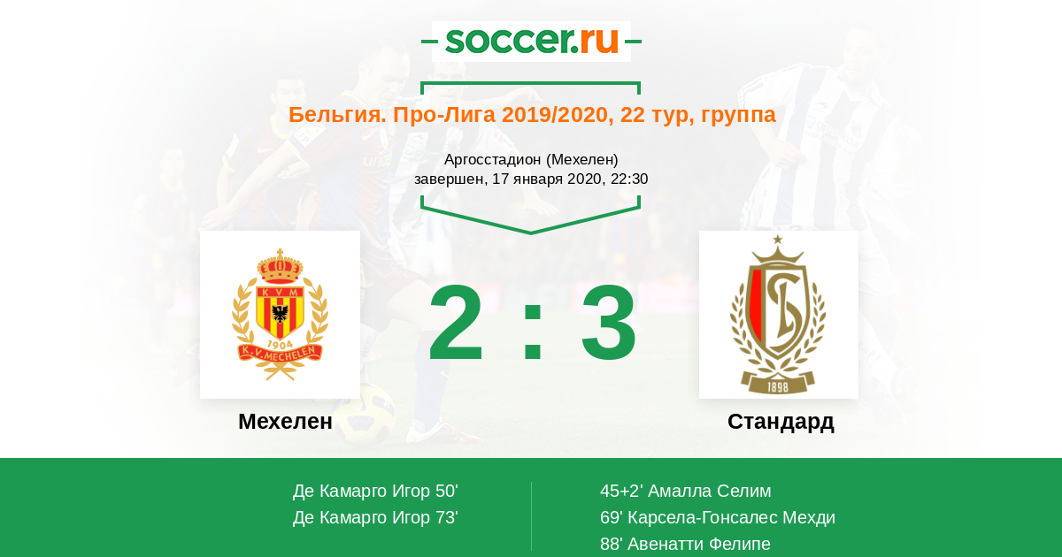 Протокол матча Мехелен против Стандард