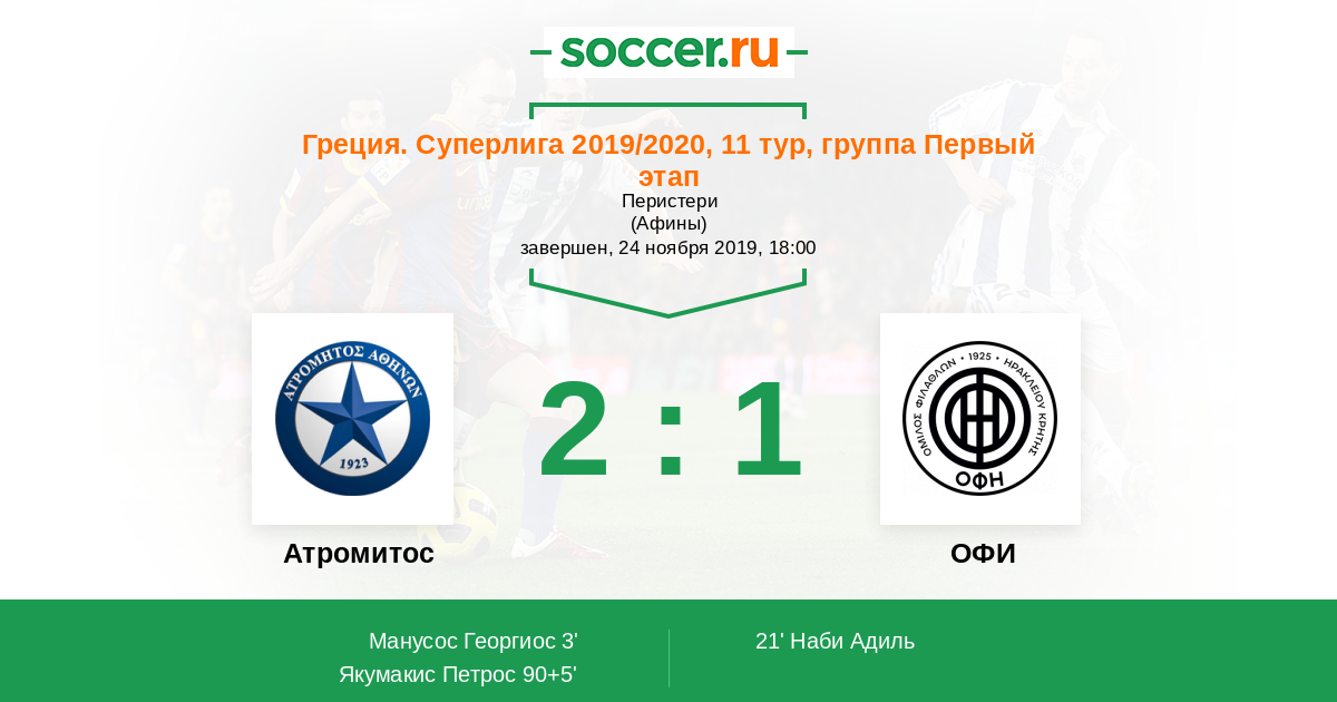 Протокол матча Атромитос против ОФИ