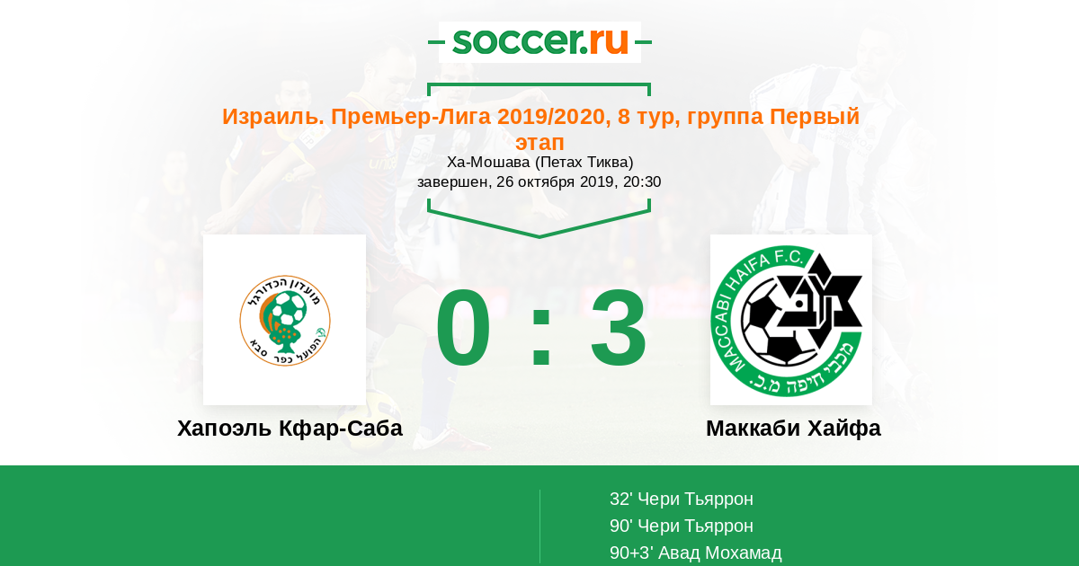 Протокол матча Хапоэль Кфар-Саба против Маккаби Хайфа
