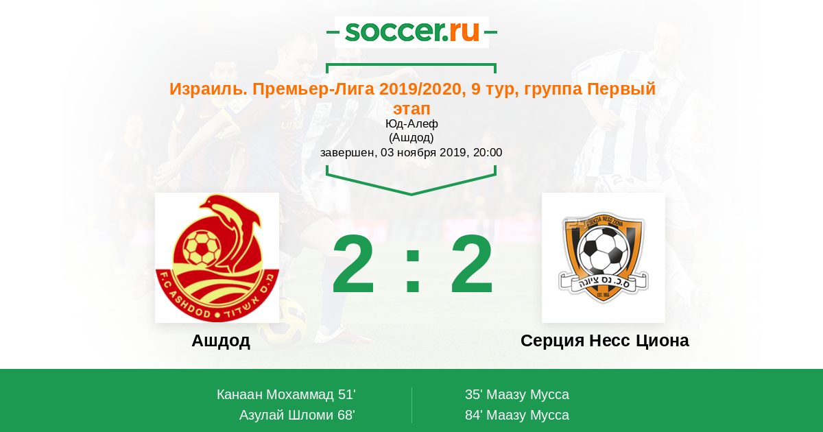 Протокол матча Ашдод против Серция Несс Циона