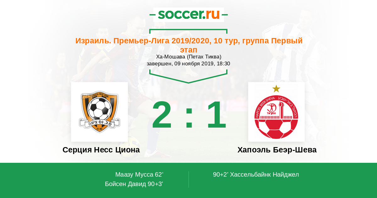 Протокол матча Серция Несс Циона против Хапоэль Беэр-Шева