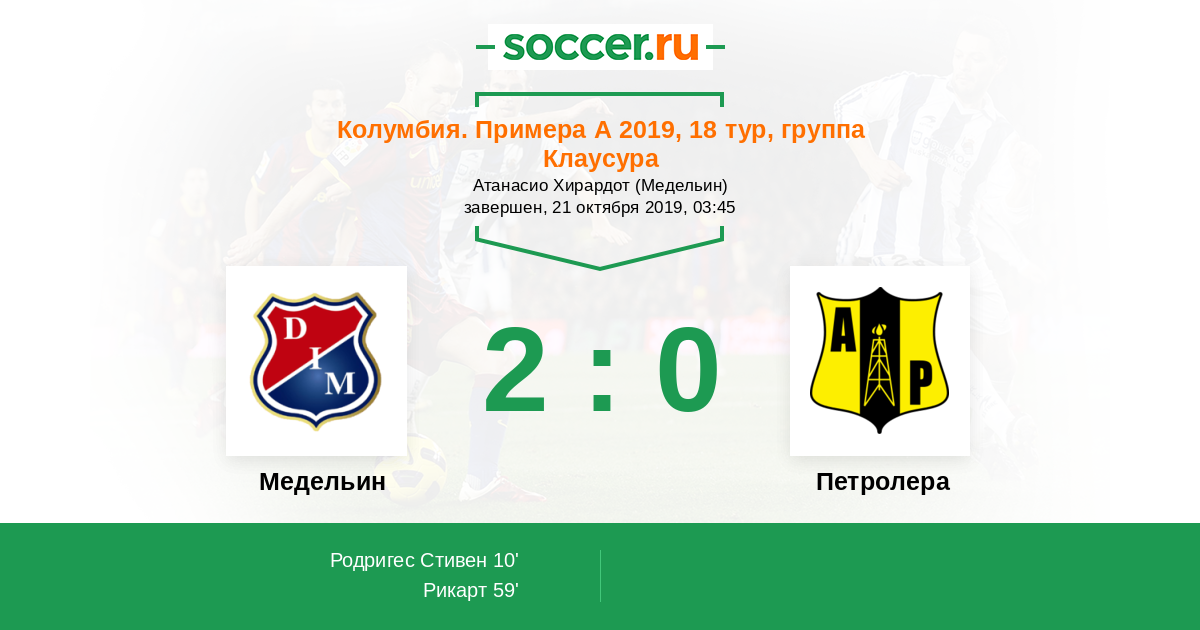Протокол матча Медельин против Петролера