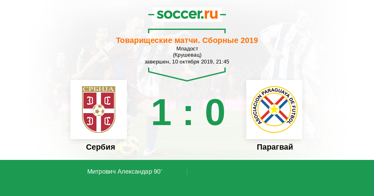 Протокол матча Сербия против Парагвай