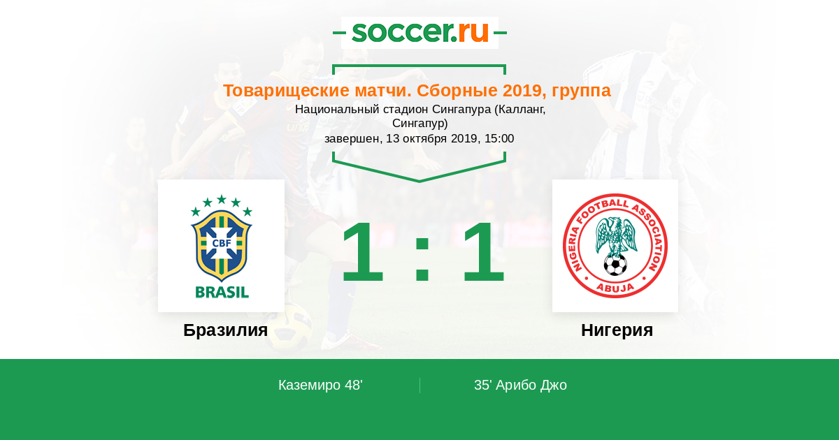 Протокол матча Бразилия против Нигерия