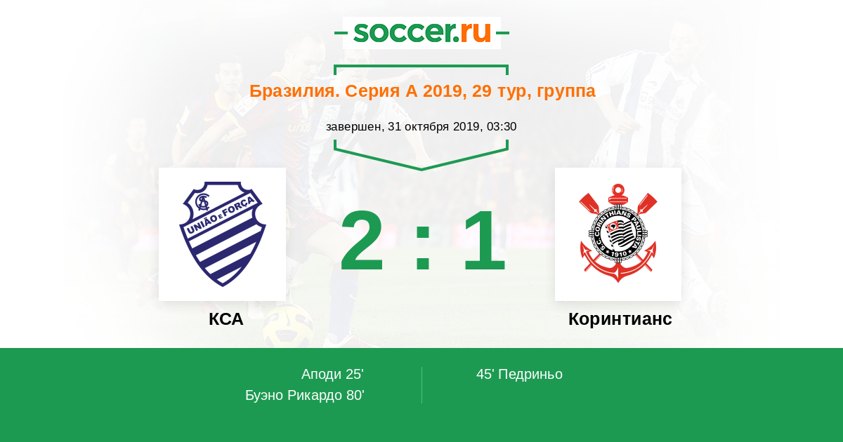 Протокол матча КСА против Коринтианс